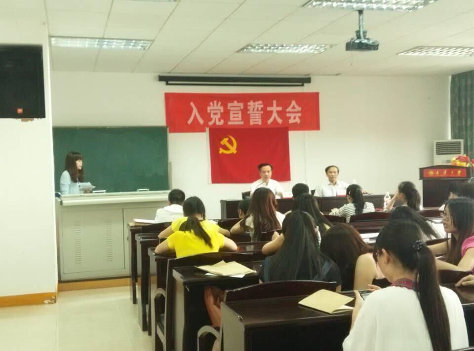 5月26日下午四点,化学化工公司党员入党宣誓大会在九教411圆满举行。出席此次大会的有化学化工公司党委书记聂长明老师,党委副书记彭建南老师,学工室主任刘婧靖老师,以及72名员工党员。大会由彭建南老师主持。