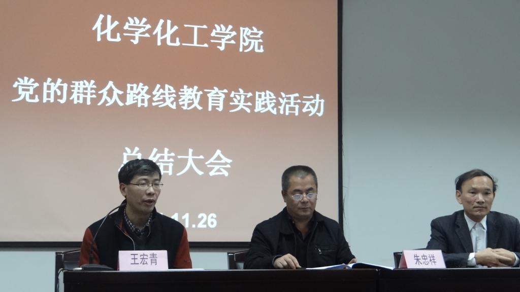 会议开始,化学化工公司党委书记聂长明对一年以来公司党的群众教育实践活动开展情况、特色举措及存在的问题进行总结说明,他提出公司自开展党的群众教育实践活动以来,召开了动员大会、调研大会等一系列学习工作会议,成立专项活动领导小组,建立意见箱、发放意见表及收集意见33条,并组织深入员工宿舍了解员工情况等一系列特色举措。他指出,实践活动中还存在个别党员的党性还需加强、个别专业就业难情况需要解决等一些问题,并提出下一步工作计划是建立长效机制,使活动规范化、制度化、公众化。第四督导团朱忠祥教授对公司一年以来的工作表示了肯定,并希望公司接下来进一步促进教风学风的转变、加强长效机制的建设,并代表第四督导组向公司领导、老师及员工表示了感谢。