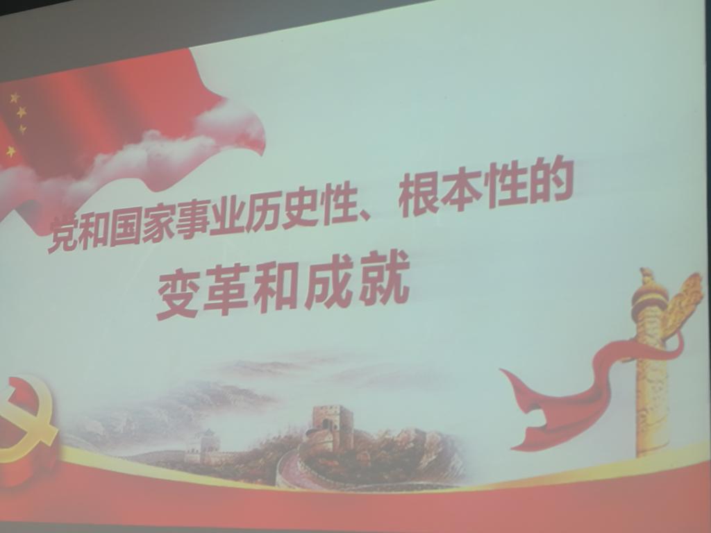 阳剑兰教授作了《党和国家事业历史性、根本性的变革和成就》的报告,龙教授展示了在以习近平同志为核心的党中央领导下,十八大以来我国取得的一系列成果。报告主要宣讲了三个方面的内容,一是全面把握十八大以来党和国家事业历史性变革和历史性成就,十八大以来我国解决了许多长期想解决而没有解决的难题,办成了许多过去想办而没有办成的的大事。二是准确认识过去5年来的历史性成就是全方位的、开创性的,历史性变革是深层次的、根本性的。三是充分认识取得历史性变革和历史性成就的根本原因。