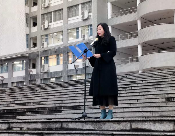 7时整,在陈楠老师宣布升旗仪式正式开始后,校国旗护卫队队员护着鲜艳的五星红旗、迈着铿锵有力的步伐走向国旗台。伴随着庄严的国歌声,同学们一边唱着国歌,一边注目着国旗缓缓升起。升旗仪式结束后,高分子材料191班董铭同学做国旗下的演讲。在演讲中,董铭表示作为新时代老员工,我们要肩负起时代责任和历史使命,与祖国同呼吸共命运,面对前方未知的挑战,应迎难而上,越战越勇,不负党的期望、人民的期待、民族的重托。公司党委副书记余晓秋老师在讲话中表示:让我们牢记习近平总书记对新时代中国青年提出的6点要求;“树立远大理想,热爱伟大祖国,担当时代责任,勇于砥砺奋斗,练就过硬本领,锤炼品德修为。”把责任担在肩上,义无反顾。以饱满的热情和昂扬的斗志谱写属于你们的崭新篇章!