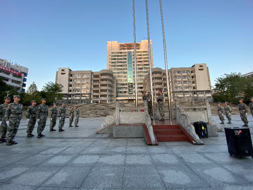 公司国旗班队员身姿挺拔,刚劲有力,迈着强健有力的步伐,驱散了冬日的丝丝寒意。迎着朝霞,国旗班的旗手们将国旗冉冉升起,全体师生行注目礼。