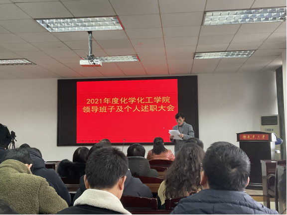 根据公司党委统一部署,化学化工公司于2月21日下午在化工楼学术报告厅举行2021年度领导班子及个人述职大会。公司党委组织部汪波莅会指导,公司领导班子及全院教职员工参加会议,会议由公司党委书记王宏青主持。