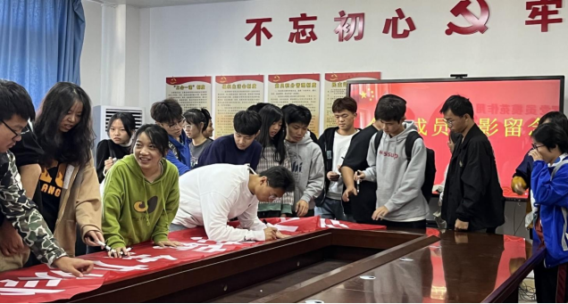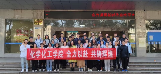 全体运动员起立宣誓并在横幅上签字,在化工楼下合影留念。