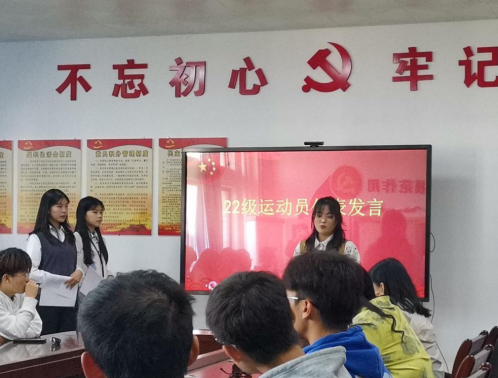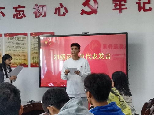 21级运动员代表黄国俊向新运动员们分享了保持竞技状态的方法,并说明了备战大运会的注意事项,鼓励运动员们以最好的状态去迎接大运会。