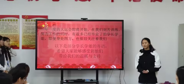 紧接着,已毕业的优秀运动员代表为运动员们分享了往年的心得体会,并为运动员们献上了最诚挚的祝愿。