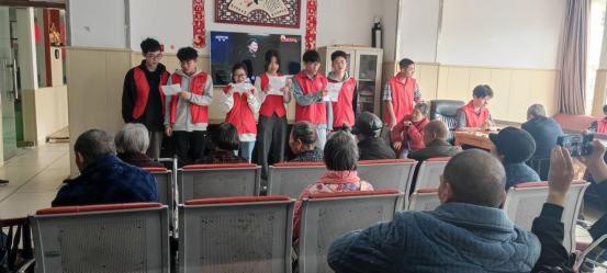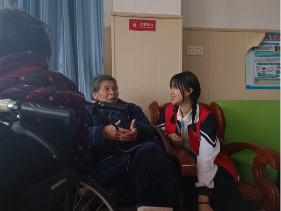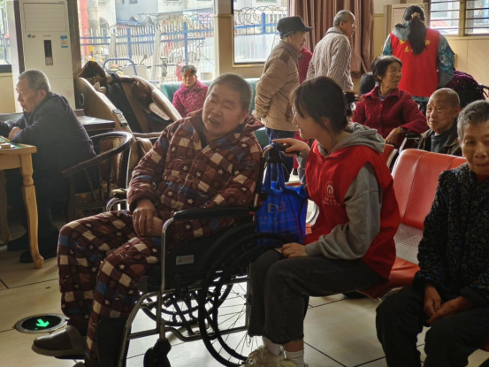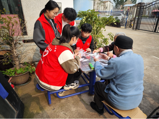 沐浴着灿烂的春光,志愿者们满怀热情地来到了敬老院。活动伊始,志愿者们分三人一组进行服务工作。在院子里,志愿者们推着腿脚不便的老人沐浴在阳光下,十分温馨;在活动室中,志愿者们与老人一起下棋、聊天,询问他们的生活和身体状况;在起居室内,志愿者们与老人促膝长谈,一起分享着人生的乐趣和知理。与此同时,志愿者们通过老年公寓的广播向老人读同学们的信件,为未能到场同学表达了他们对老人的关心和挂念。在完成服务工作后,志愿者们开始向老人展示精彩的节目表演。一个个别出心裁的节目将敬老院内的氛围推向高潮,志愿者和老人都沉浸在这其乐融融的氛围中。表演结束后,志愿者们与老人道别,离开敬老院。虽然时间不长,但小小的努力带来了幸福与感动。回想老人们开心的笑容,每一位志愿者的心里就撒满了阳光。