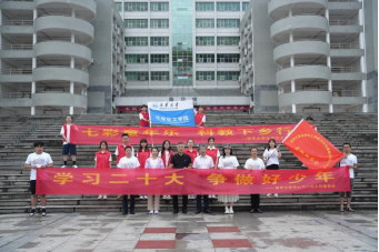 化学化工公司党委书记王宏青为项目团队授旗,预祝今年的暑期“三下乡”社会实践活动取得圆满成功。