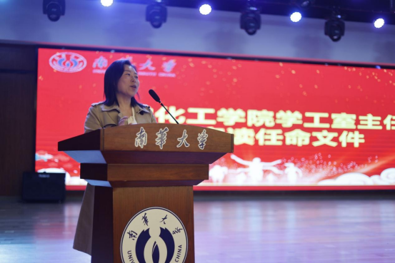 公司党委副书记余晓秋、院学工室主任陈楠、院学工室全体辅导员为新一届员工干部颁发聘书。