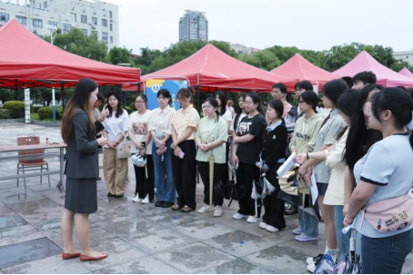在活动简历诊断区,单云丽等老师对同学们的简历进行优化指导,结合同学们的在校经历,针对性地提供修改意见,突出个人优势提升求职综合素质。求职礼仪区,邓丝席老师对同学们进行面试仪容、仪态的规范化指导。求职面试区,6-8名同学为一组进行模拟面试,陈楠等老师根据同学们的临场表现,结合简历信息,提供针对性建议,并现场分享面试技巧,提升同学们的面试能力及规范化意识。在身心舒缓区,设计了手作口红唇膏、零食套圈等趣味活动,以美育、劳育舒缓员工焦虑和压力。