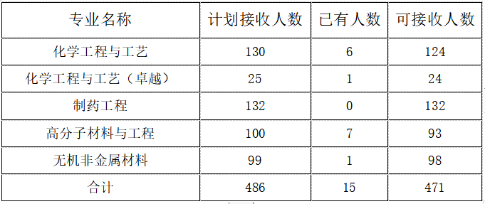 注:可接收人数=计划接收人数-已有员工数(休学后复学及转入下一年级、特殊类型招生录取员工)