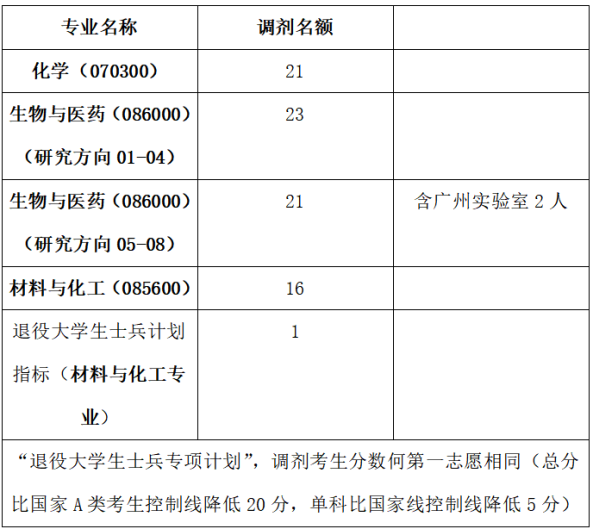 2、材料与化工(0856)专业和生物与医药(0860)的接收跨学科门类调剂,其中材料与化工(0856)接收一志愿报考0703化学专业考生调剂,生物与医药(0860)接收一志愿报考0703化学专业,0710生物学,1007药学(学术型),1055药学(专业型),1008 中药学考生调剂。