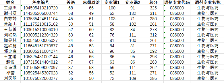 生物与医药专业第五批调剂复试考生名单及复试安排