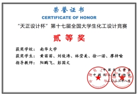 2023.8月16-22日,由中国化工学会、中国化工教育协会主办,中国石油大学(华东)承办,中国石油大学(北京)协办,浙江省天正设计工程有限公司冠名赞助的“天正设计杯”第十七届全国老员工化工设计竞赛全国总决赛顺利举办。永利集团3044永利集团3044阳鹏飞副教授、彭国文教授指导的2020级化学工程与工艺专业员工黄苗苗、刘俊涛、林莹美、徐一诺、廖梓喻同学组成的“一鸣腈人”团队,与来自华东理工大学、浙江大学、天津大学等全国64所高校的参赛队伍进行激烈角逐,并荣获全国二等奖的优异成绩。