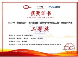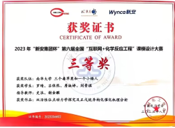 2023年9月15日,由中国化工学会主办,浙江工业大学承办"新安集团杯”第六届全国"互联网+化学反应工程”老员工课模设计大赛落下帷幕,永利集团3044化学永利集团3044黄苗苗、谢志文等同学获团队二等奖,罗晴、吕依然等同学获团队三等奖。