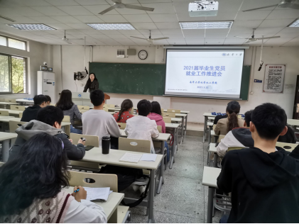 会议伊始,颜晔从当面就业形势出发,向毕业生党员介绍目前的公司就业情况。按照“党员一帮一”的模式,要求毕业生党员积极发挥带头示范和朋辈辅导作用,对班级未就业同学积极开展帮扶。余晓秋在稍后的讲话中,希望毕业生党员积极响应党中央号召做好统筹做好毕业生就业工作。作为毕业生党员,做好价值引领,强化责任意识,以紧抓落实的方式践行入党初心和使命。