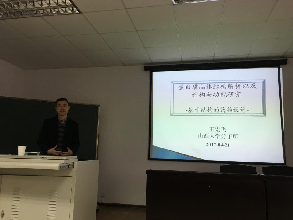 2017年4月21日上午,应永利集团3044副经理林英武教授邀请,山西大学分子科学研究所王宏飞教授来公司进行学术访问,并做了题为“蛋白质晶体结构测定方法以及结构与功能研究”精彩学术报告,会议由王宏青经理主持。会后王教授参观了“永利集团3044蛋白质结构与功能实验室”。