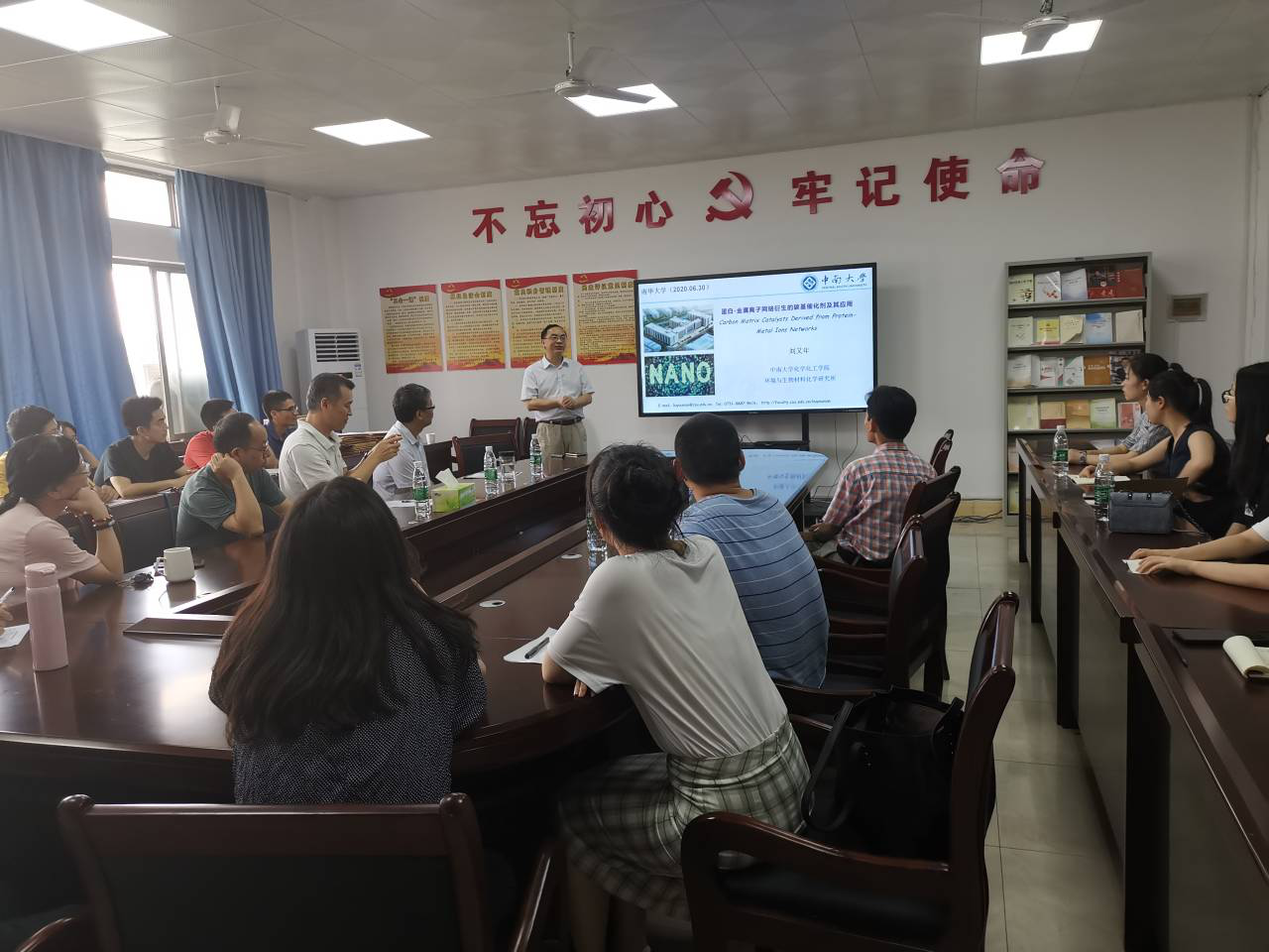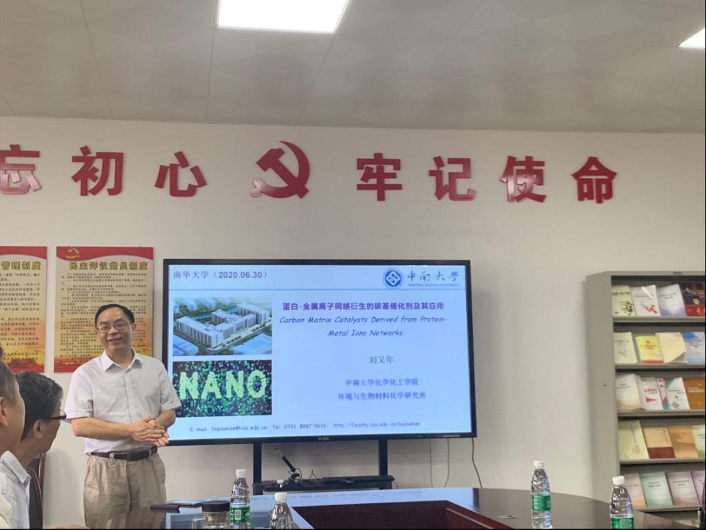2020年6月30日下午3点30分,化工公司邀请到了中南大学永利集团3044经理,湖南省化学化工学会无机及应用化学专业委员会主任委员,湖南省微纳材料界面科学重点实验室带头人刘又年教授在化工公司9-416学术报告厅作了题为《蛋白-金属离子网络衍生的碳基催化剂及其应用》专题报告,报告由化工公司经理王宏青教授主持,化工公司及其他院系教师、研究生聆听了本次讲座。