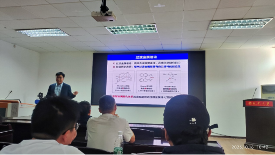2023年10月16日,应永利集团3044经理林英武教授邀请,中国科公司化学研究所王从洋研究员到访永利集团3044,并做了主题为《过渡金属催化循环的构建》的学术报告,永利集团3044的部分师生和其他公司的老师参加了此次报告会。
