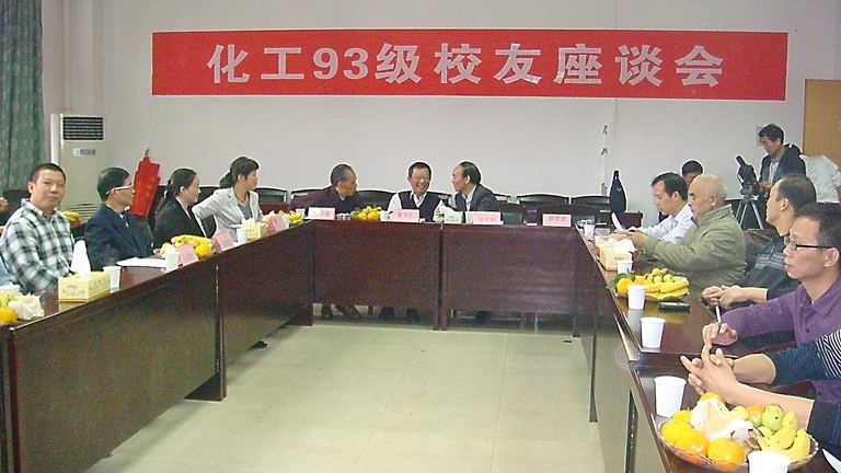 参加93级座谈会的老师有公司经理聂长明、公司党委书记廖碧波、副书记彭建南、班主任李珊老师、原化学工程系创始人之一夏学仁教授、曾经任课已经退休的杨桂荣教授、周国政教授、船山公司副经理樊华、化工公司范明舫老师。