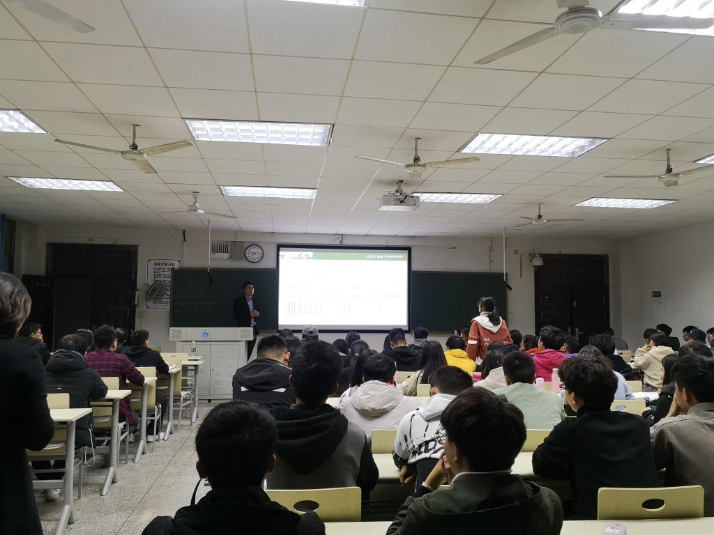 作为员工的陈治,从企业文化切入让同学们全面了解本公司、所在岗位的要求以及本公司的团队。接下来由浙江普洛康裕制药有限公司招聘经理姚方军着重介绍制药企业的发展趋势。他认为相对于其他工作领域来说,医药方面是朝阳产业。对于岗位的选择,姚方军认为:人要有不同的可能性,要勇于尝试或接受不同的岗位,让自己的人生多一种可能,要与自己的舒适圈保持距离。最后由公司行政人事部副部长杨倩在工作方面向同学们提出建议:兴趣是最好的老师,在生活中要常存热情与兴趣,在工作中要有负责与耐心。杨倩讲述了自己多年来工作的经历,从父母安排的“铁饭碗”到自己自主创业,在成功的背后肩负着多少的付出,蕴含着多大的勇气。她向同学们说道:青年要敢于拼搏要有血性,我们正当青春,应该追随自己的内心,要敢于尝试。