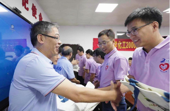 林英武经理总结此次活动,希望员工们可以继续弘扬南华精神,在为国家建设的同时也为母校、公司未来的发展增添宝贵的力量、引入新鲜血液。并在会后向返校员工赠送化工公司纪念品。