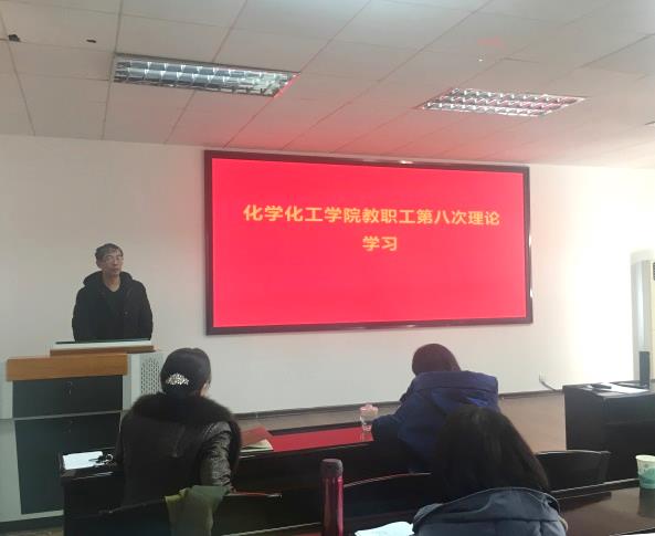 按照公司党委的统一部署, 2021年1月18日上午,化学化工公司党委组织全院教职工在9-411学术报告厅进行了第八次教职工理论学习。本次学习由党支部书记王宏青主持。