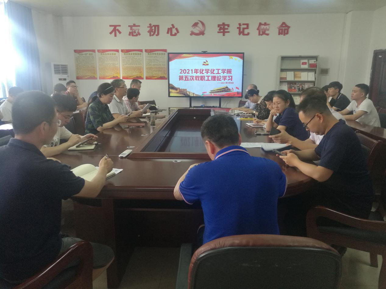 按照公司党委的统一部署, 2021年7月9日上午9:30,化学化工公司党委组织全院教职工在9-416党建室进行了第五次教职工理论学习。本次学习由公司党委书记王宏青主持。
