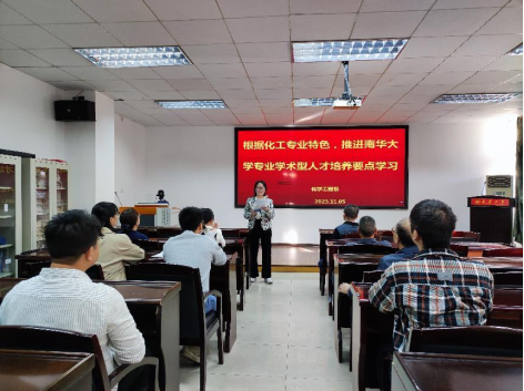 首先,姚陈老师从学术型人才一般特征、本科阶段学术型人才培养的重点、永利集团3044学术型人才培养的目标定位、公司层面本科生学术型人才培养的着力点、公司层面本科生学术型人才培养的着力点、教研室(系)及教师层面本科生学术型人才培养的着力点、学术型本科生发展目标定位、重点关注的学术型人才培养指标等八个方面进行了阐述,化工系全体教师进行了深入的学习和交流。